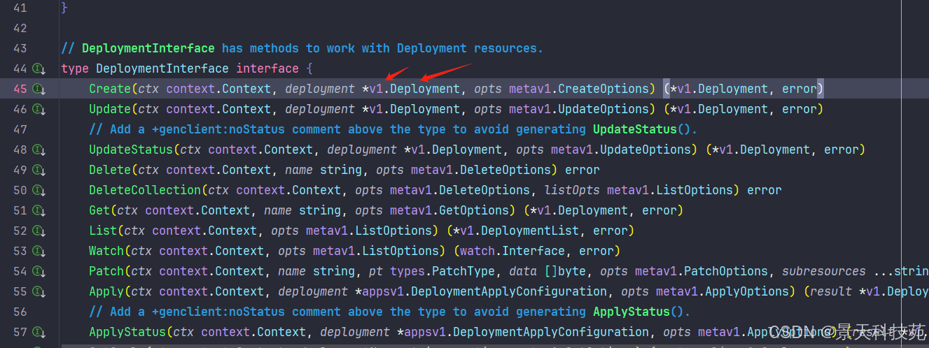 deployment 的apiversion是 apps/v1 对应的client-go里面的方法就是 clientset.appsv1()