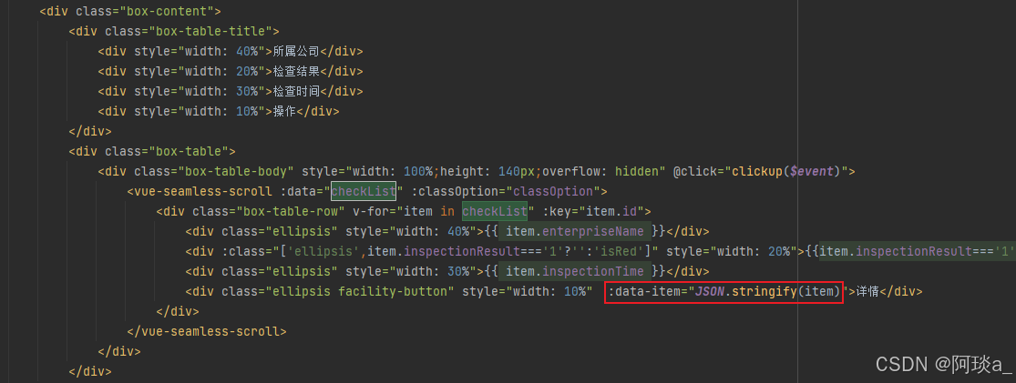 <div class="ellipsis facility-button" style="width: 10%" :data-item="json.stringify(item)">详情</div>