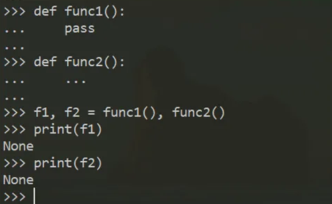 在正式开始之前,用pass语句 和 …对象 作为例子,看下 python 的函数返回值: