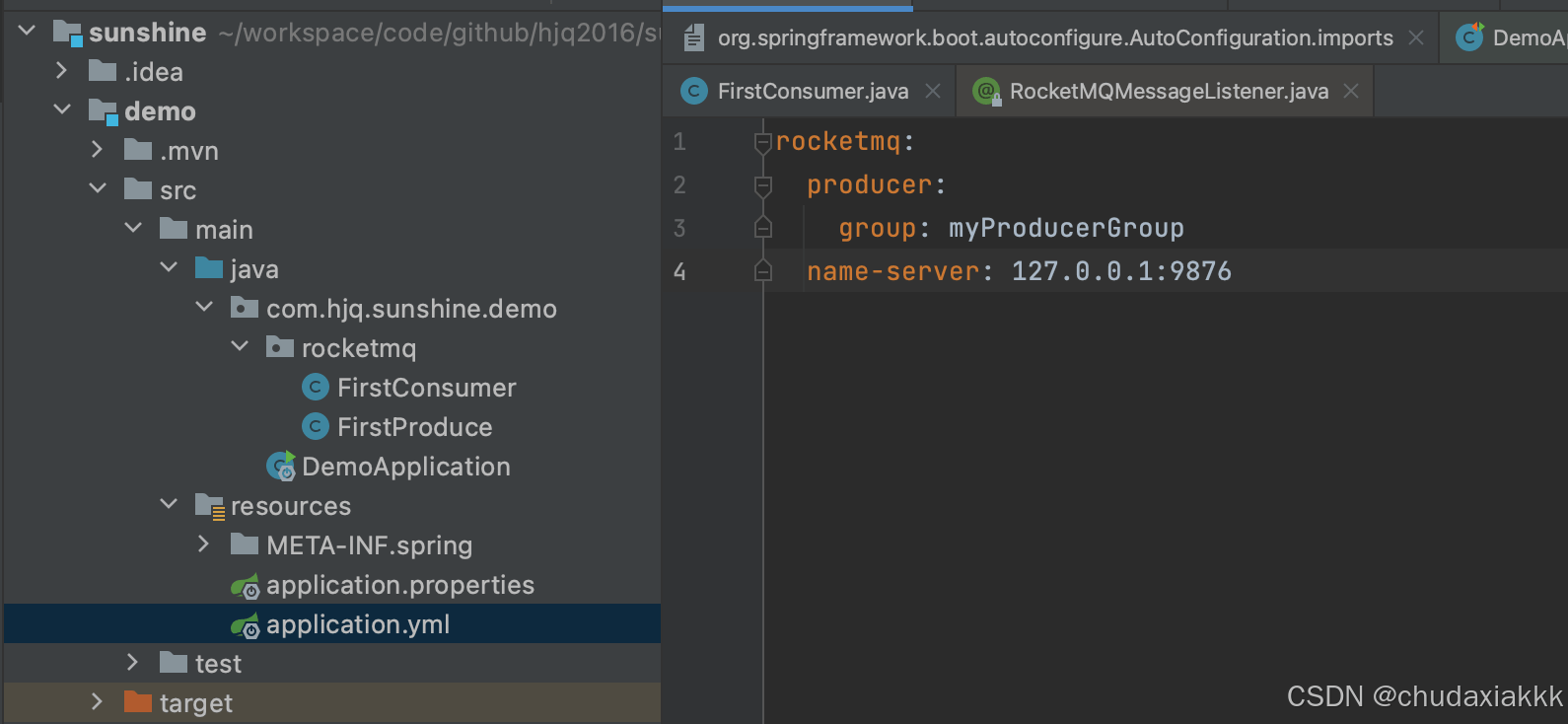 }注意事项。使用spring-boot 3.x版本,rocketmq-spring-boot-starter的自动配置会有bug,提示rocketmqtemplate没有bean注入。解决方案参考未注入bean