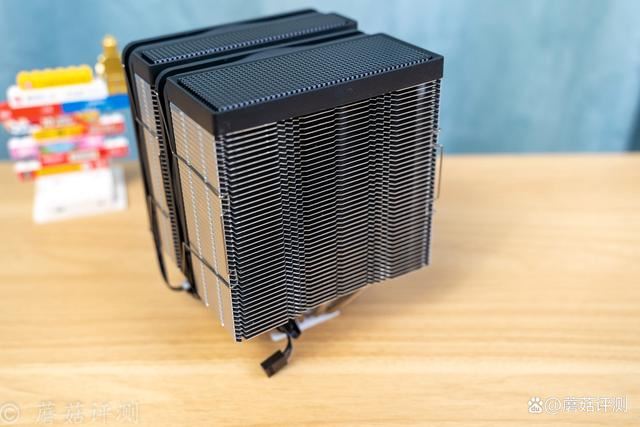 从散热器侧面看过去很有意思,两把超薄散热风扇,一厚一薄两个散热塔。