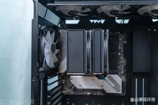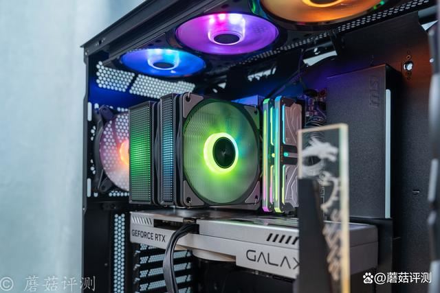 在散热器的顶部,两个不同宽度的散热塔的顶部,也有rgb的灯效。