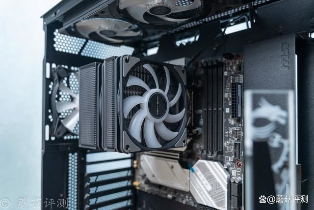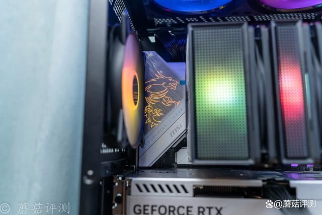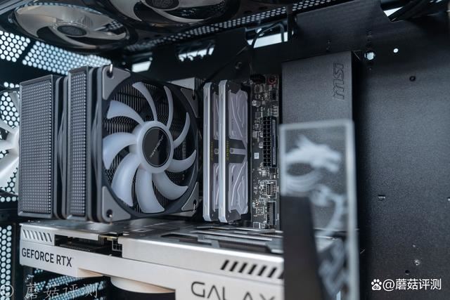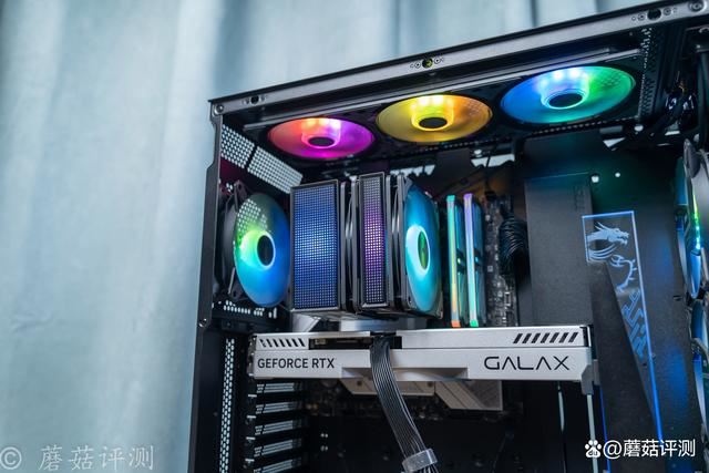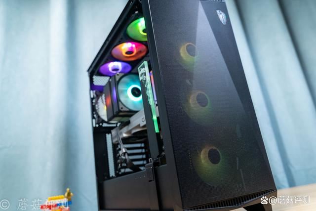 机箱是微星的mpg gungnir 300r airflow氪金枪3,这款机箱前部拥有超大面积的金属冲孔网,其标配4把机箱风扇,在机箱前部就放置了3把,在机箱前部提供充足的进风。