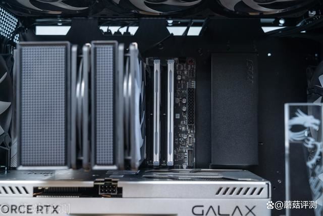 从内存的上部看过去,效果会更加明显,内存的4个插槽完全露出,搭配任何高度的内存都可以轻松安装。