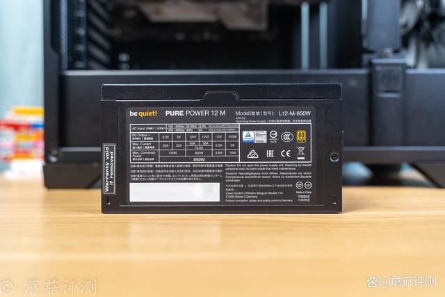 电源用的是德商德静界的pure power 12 m系列电源,额定功率850w,可以轻松满足这套配置的供电需求。电源外壳侧面,硕大的be quiet!的logo,很熟悉。