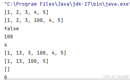 system.out.println(list1);//[1, 2, 3, 100, 4, 5]