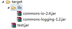 配置完成后,通过mvn package指令打包,会在target目录下生成jar包,并将依赖包拷贝到target/lib目录下,目录结构如下: