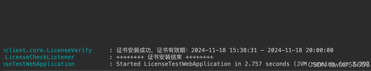 得到的证书文件license.lic、公钥文件和密钥库密码storepass我们需要提供给客户,当然密码可以提前配置在服务中,仅提供公钥和证书文件给客户即可。