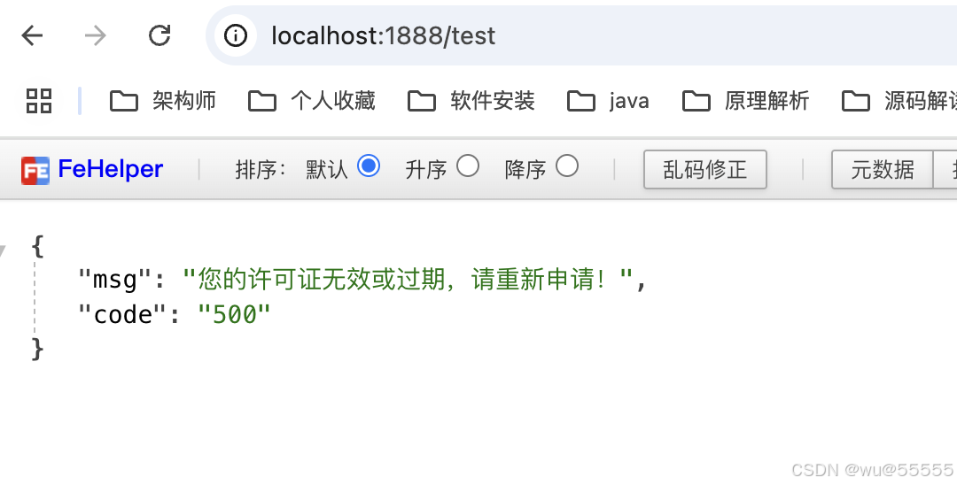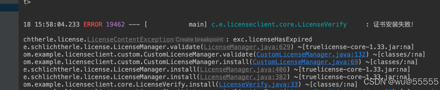 7、我们继续测试校验不通过的场景,重新生成license文件,并将有效期调整为1分钟后,然后等待2分钟再重启项目,注意重新生成证书后要重新启动项目,让项目重新加载证书