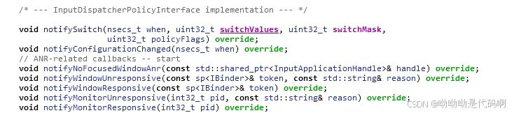 可以观察在inputdispatcherpolicyinterface中是个虚函数,最终实现在nativeinputmanager::notifyswitch()