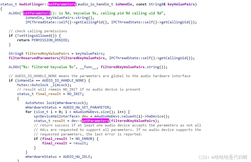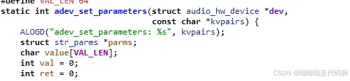 audio_hw.c->audio_hal::adev_set_parameters()