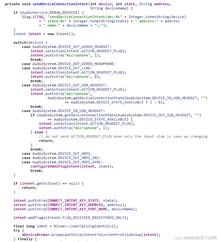 路径:frameworks/base/services/core/java/com/android/server/audio/audiodeviceinventory.java