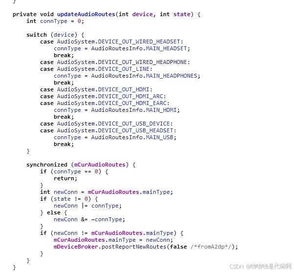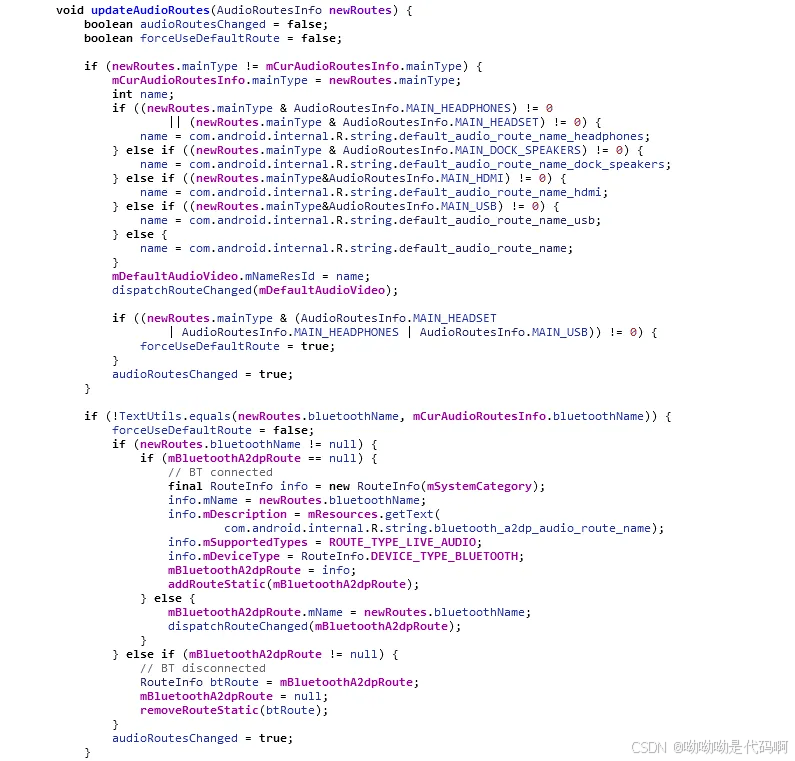 c) updataaudioroutes() 更新audio路由