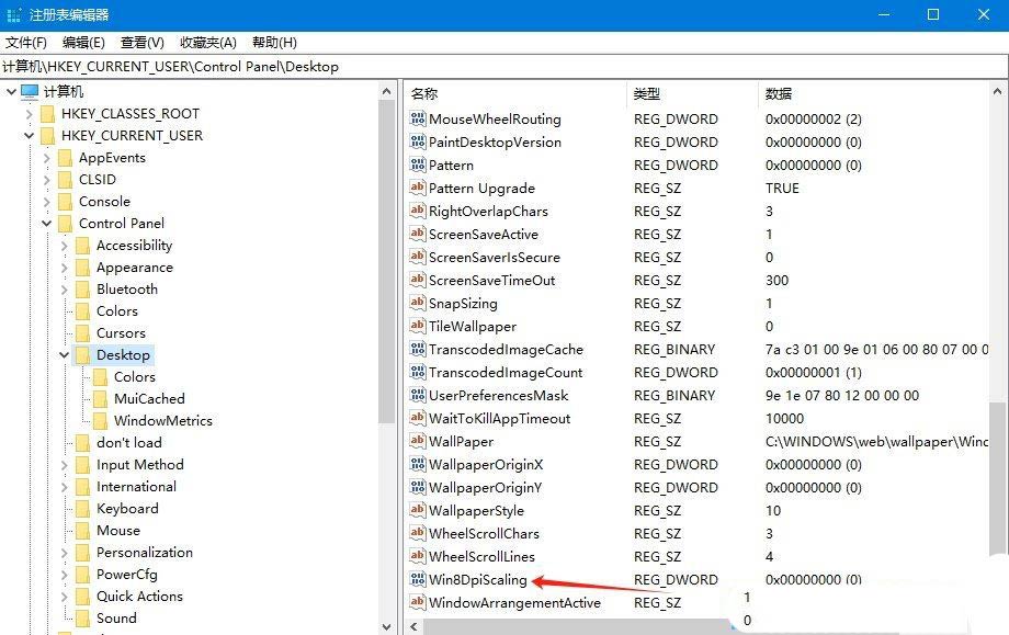 3、然后,在对应得右侧界面中,找到并双击打开“win8dpiscaling”。