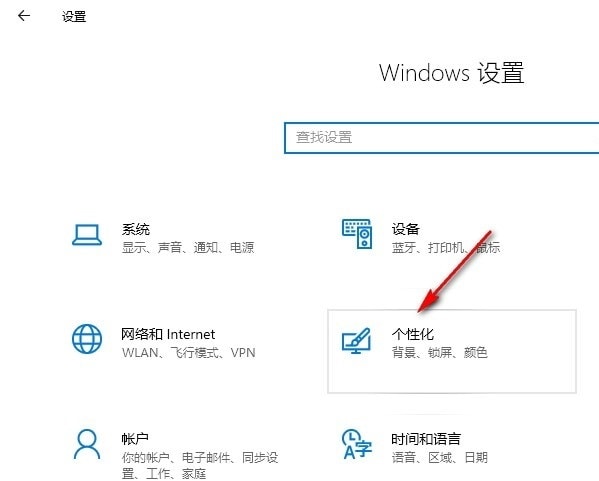 2、第二步,进入windows设置页面之后,我们在该页面中点击打开“个性化”选项