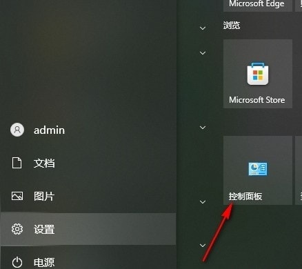 2、第二步,打开开始按钮之后,我们再在菜单列表的右侧页面中点击打开控制面板选项