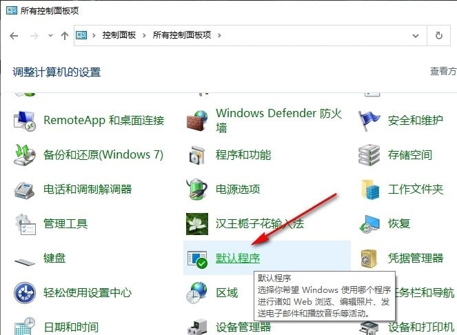 3、第三步,进入控制面板页面之后,我们在该页面中打开“默认程序”选项