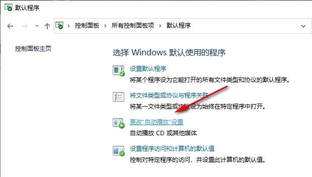4、第四步,进入默认程序页面之后,我们在该页面中点击打开“更改自动播放设置”选项