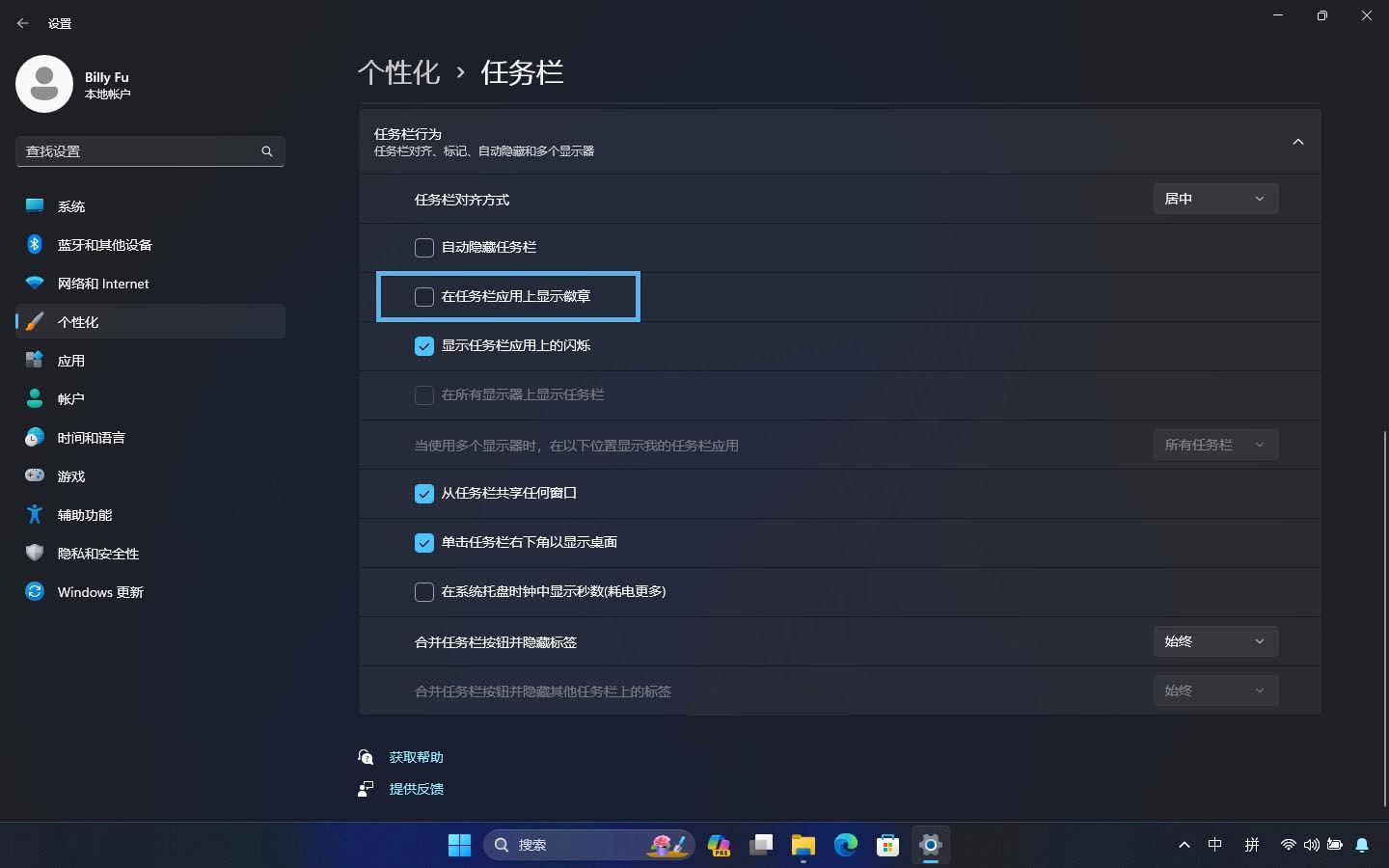 windows 11 会在「任务栏」的应用图标上显示未读消息数。如果你觉得分散注意力,可以关闭徽章通知: