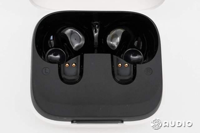 座舱上耳机柄位置设置充电顶针,两侧雕刻l/r左右标识。