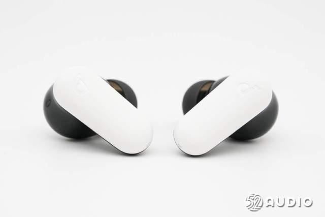 耳机外侧外观一览,扁平的耳机柄设计,白色哑光盖板,上方设计有品牌logo,同时也是触控区域。