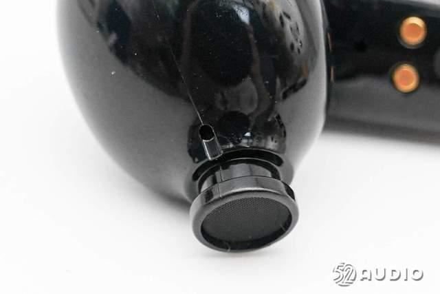 取掉耳塞,耳机出音嘴特写,丝网防护,内部设置有降噪麦克风。
