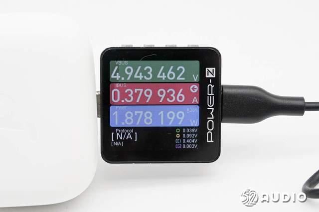 我们采用chargerlab power-z km003c便携式电源测试仪对soundcore声阔p30i真无线降噪耳机进行充电测试,充电功率约为1.88w。