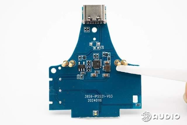 座舱底部结构一览,设置有两颗磁铁用于吸附固定耳机。