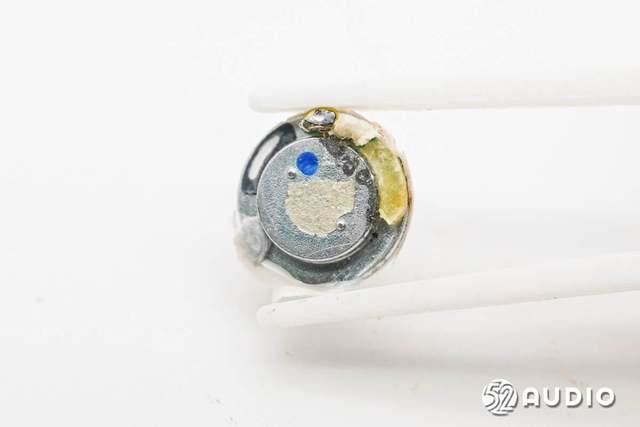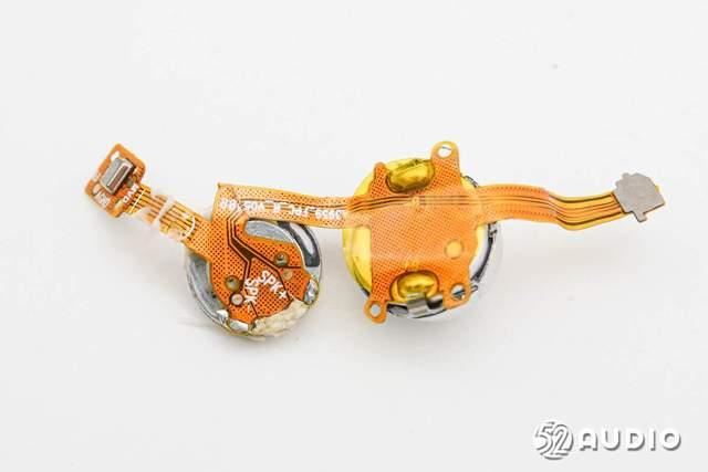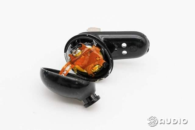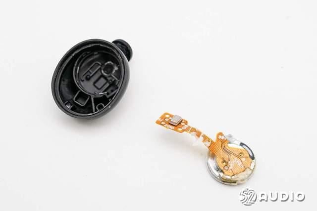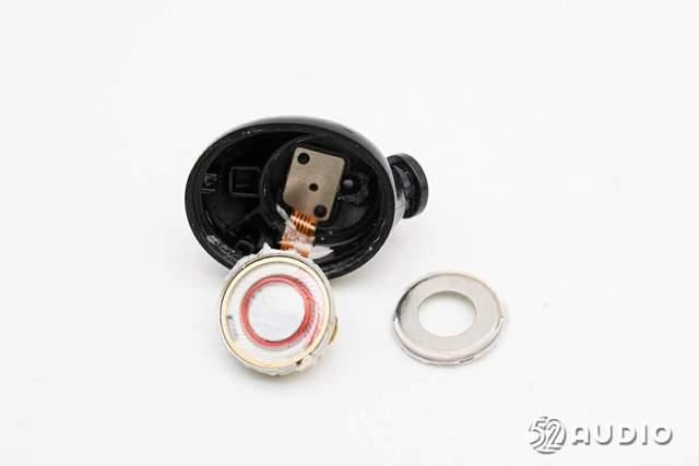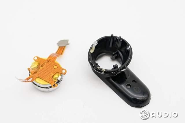 掀开扬声器,前腔底部热熔柱固定后馈降噪麦克风。