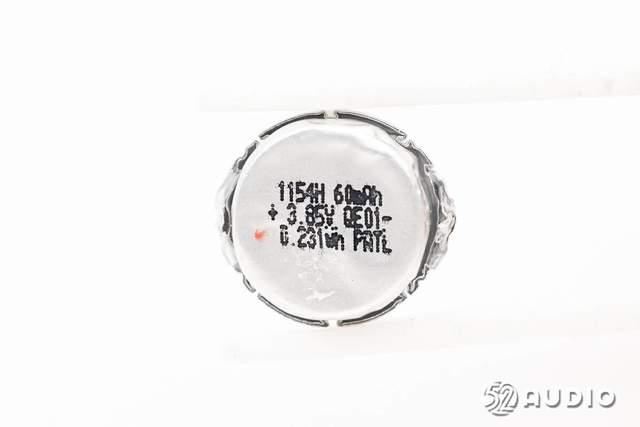 耳机内置软包扣式电池型号:1154h,额定容量:60mah 0.231wh,标称电压:3.85v,同样来自patl小锂新能源。