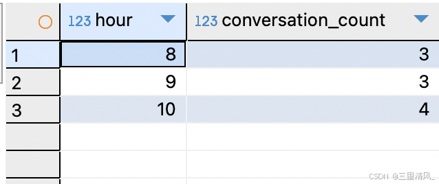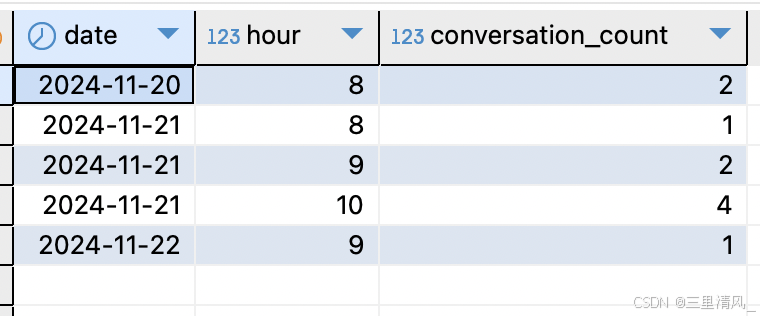 我们按照上面的方法,编写sql来查询每小时内新建对话数:
