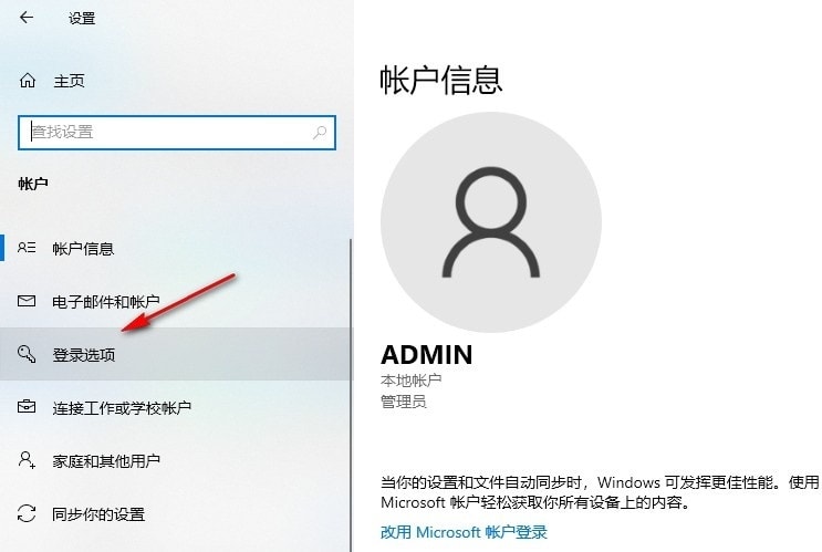 4、第四步,进入账户页面之后,我们在左侧列表中点击打开“登录选项”