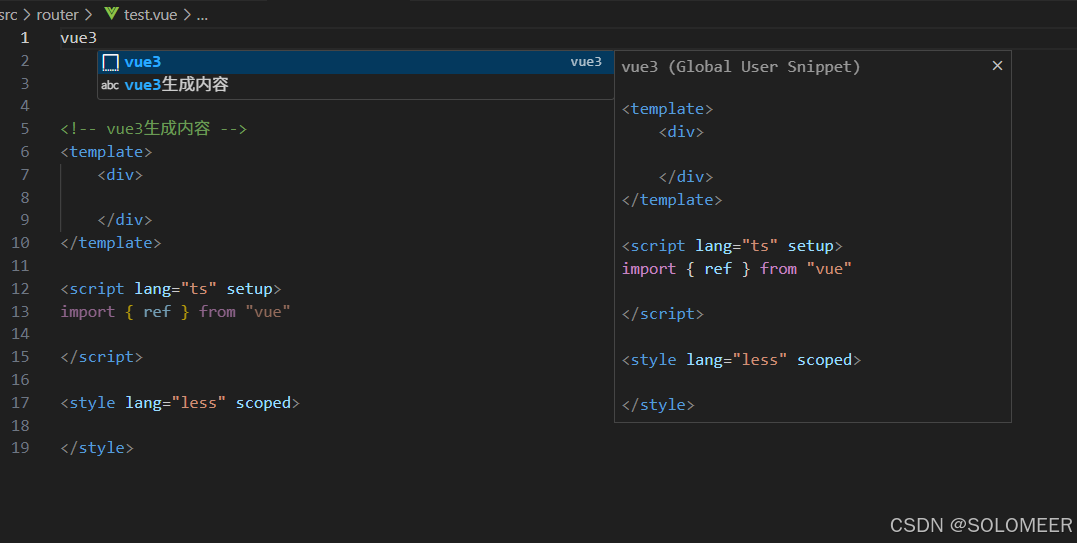 vue3:设置该快捷键可以一键生成vue文件的基础框架