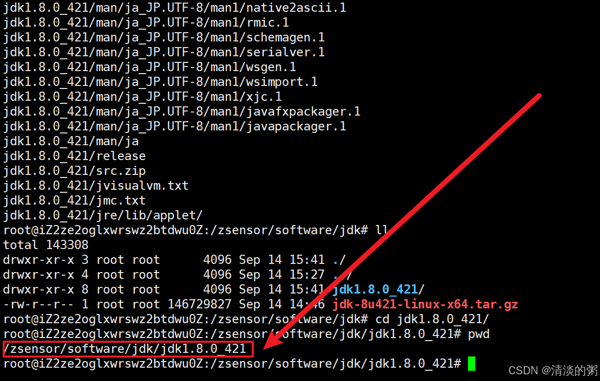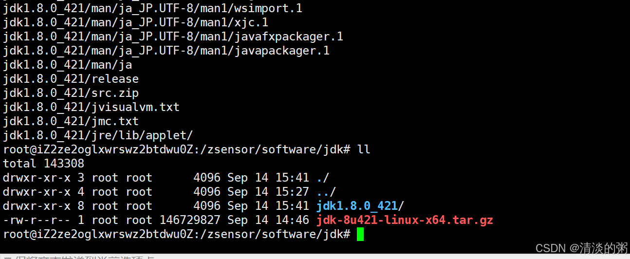 1、下载官网链接:java downloads | oracle2、上传到linux服务器3、解压缩jdk压缩包tar -zxvf jdk-8u421-linux-x64.tar.gz4、查看解压缩目