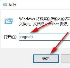 2、第二步,打开运行窗口之后,我们在该窗口中输入“regedit”,然后点击确定选项