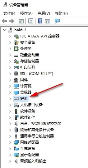 3、第三步,进入设备管理器页面之后,我们在该页面中点击打开键盘选项