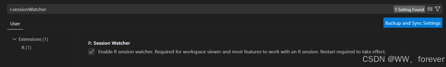 说明:r.sessionwatcher选项决定是否启用 session watcher,这是 r 插件在 vs code 中的一个重要功能。