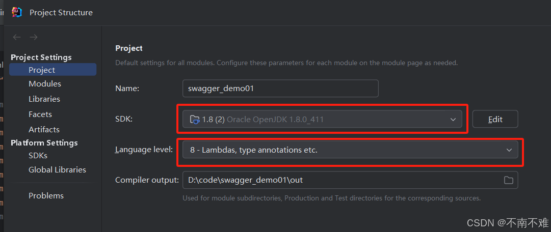 1、在project structure的project下确保sdk和language level两个地方的版本一致,我这里使用的是jdk1.8