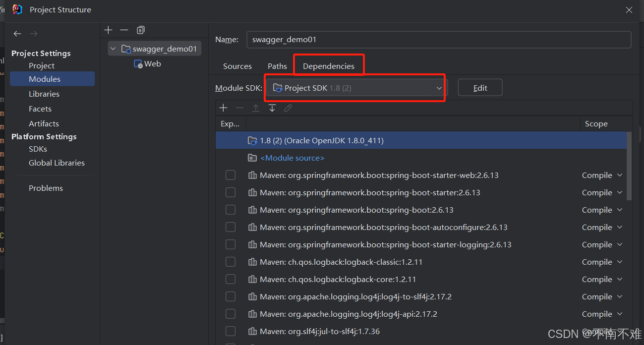 3、在moudles中dependencies中让版本与所需版本一致