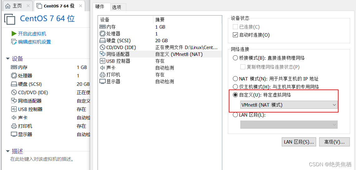 1、右键虚拟机镜像进入设置,配置网络适配器。