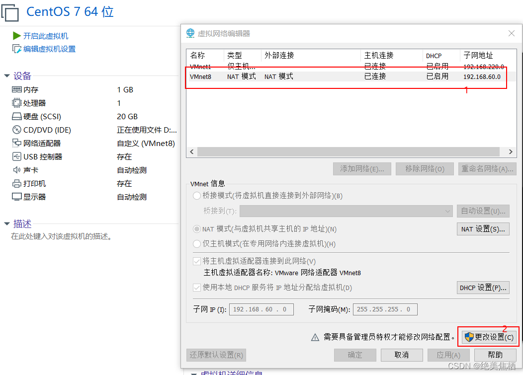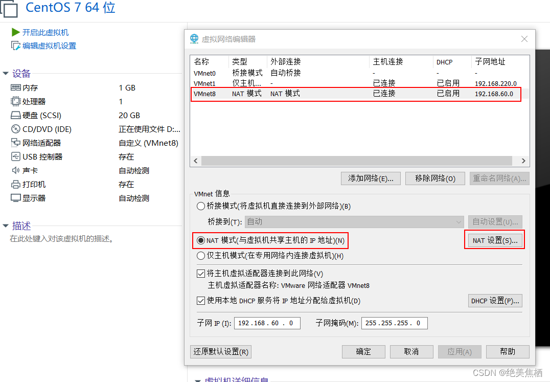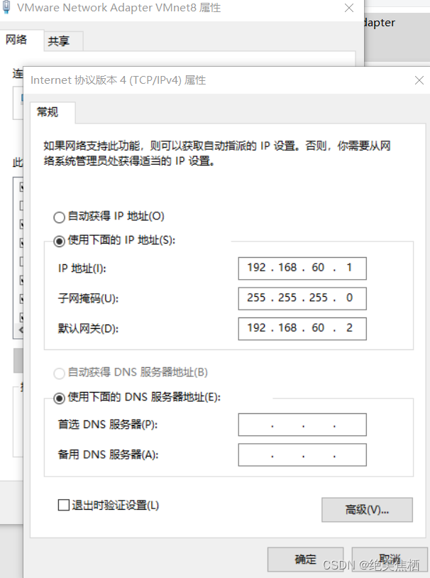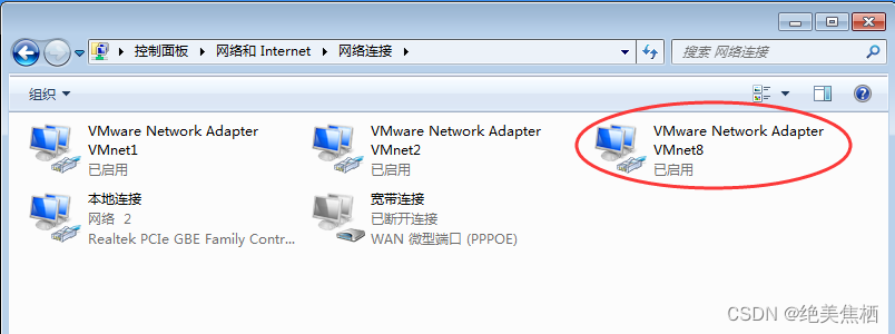 找到宿主机的”控制面板”->”网络和 internet”->”网络连接”,双击”vmware network adapter vmnet8”,进行宿主内网ip设置