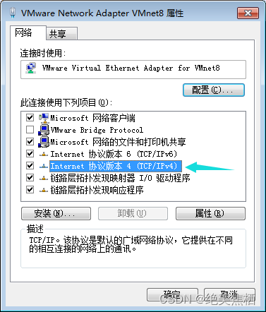 选择属性,配置ip地址与默认网关(与虚拟机虚拟网关一致)