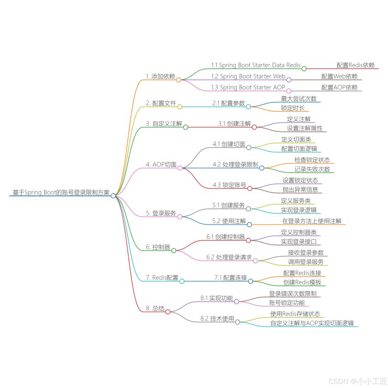 基于spring boot的账号登录错误次数限制和锁定功能,使用了redis来存储登录失败次数和锁定状态,并通过自定义注解和aop来实现切面逻辑。配置文件中可以灵活配置最大尝试次数和锁定时长。