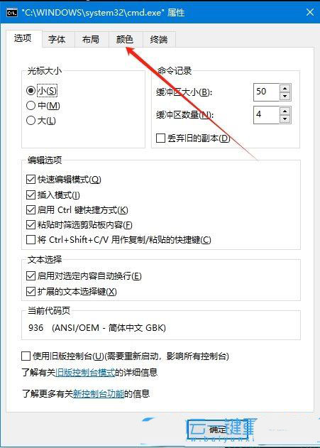 3、然后,在弹出的窗口中,选择切换到“颜色”选项栏。