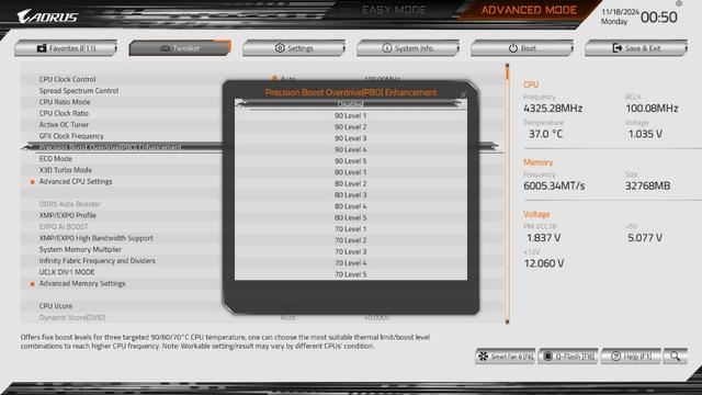 x870冰雕主板用的也是uc bios,皮肤用的是冰雕专属的银白配色,除了和以往相同的功能区、信息区,右上角的gigabyte perfdrive换成了x3d turbo mode的功能选项,这也是本次评测将要重点测试的功能。