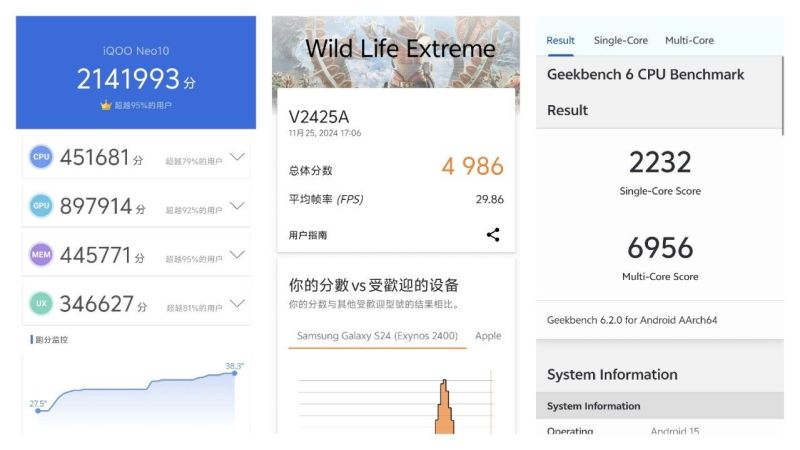 iqoo neo10搭载了旗舰芯片骁龙8gen3,作为去年备受好评的旗舰芯片,这款处理器在性能表现上非常优秀,这里就不赘述了。