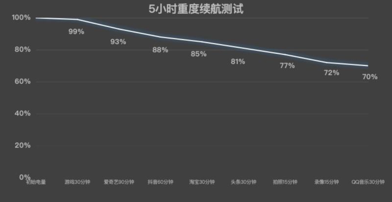 续航方面,我们采用中关村在线5小时重度续航测试模型,对其进行了续航测试。在当前室温环境下,连接办公室wi-fi,关闭蓝牙、gps,屏幕亮度、音量均设为50%,结果如下: