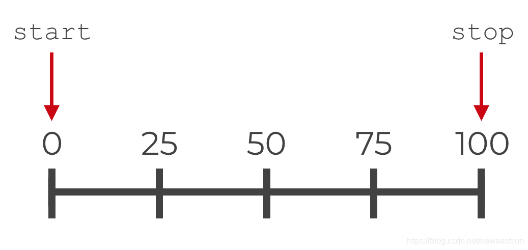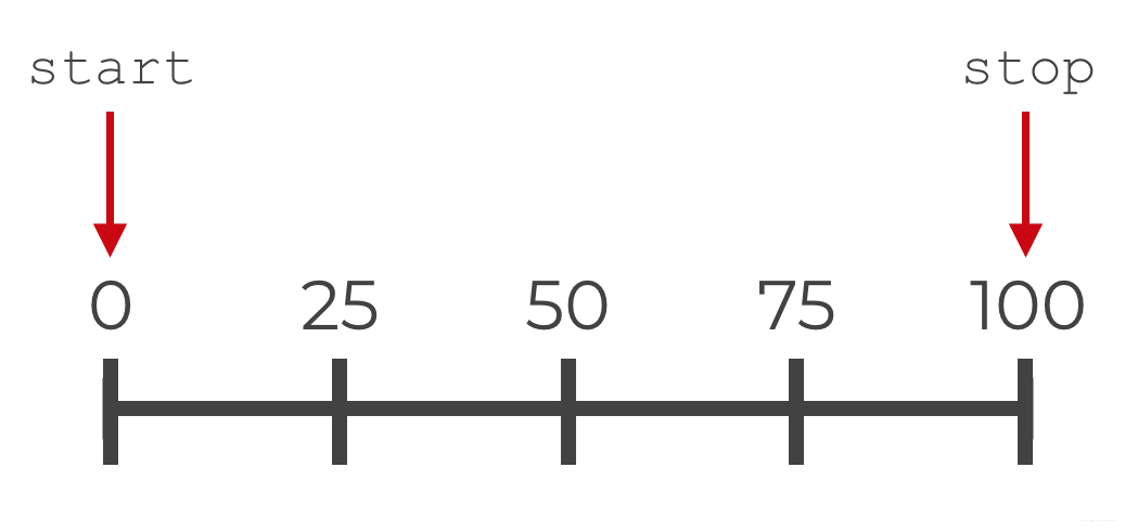 stop 参数数值范围的终止点。通常其为结果的最后一个值,但如果修改endpoint = false, 则结果中不包括该值(后面示例会说明)。