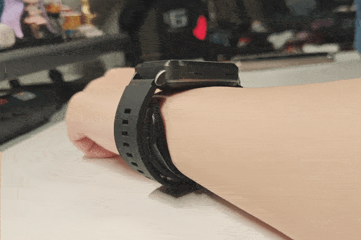 首先是这款智能手表主推的血压/脉搏检测,开始检测可以看到,表带内的气囊会慢慢鼓起,气泵+气囊式的测压系统原理和传统血压仪一致。